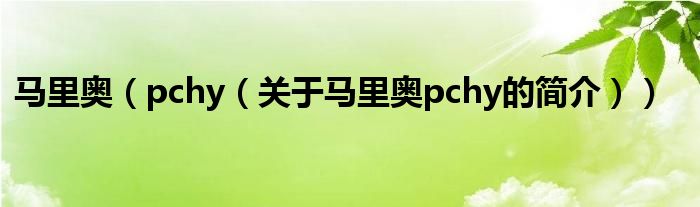 本文關于馬里奧 pchy的簡介就講解完畢,希望對大家有所幫助。