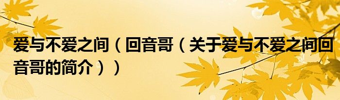 本文關于愛與不愛之間 回音哥的簡介就講解完畢,希望對大家有所幫助。