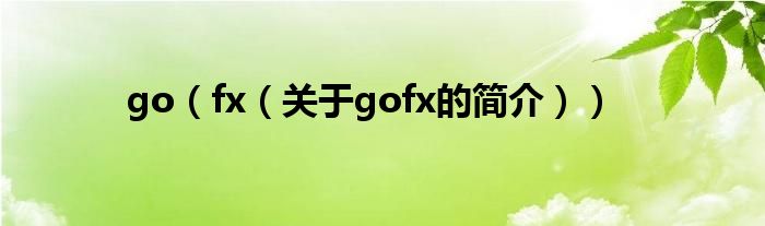 大家好,go fx,關于go fx的簡介很多人還不知道,現在讓我們一起來看看吧!