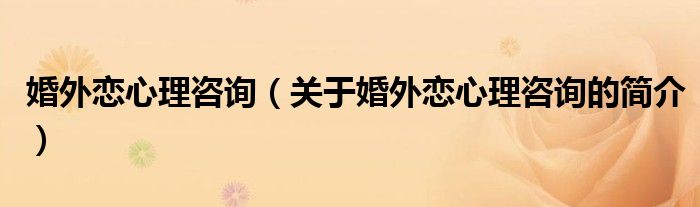 本文關(guān)于婚外戀心理咨詢的簡(jiǎn)介就講解完畢,希望對(duì)大家有所幫助。
