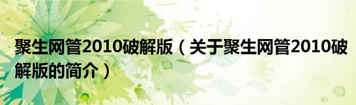 本文關于聚生網管2010破解版的簡介就講解完畢,希望對大家有所幫助。