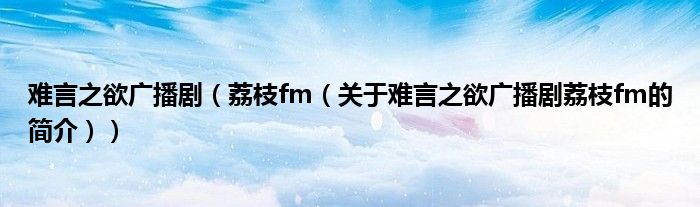大家好,難言之欲廣播劇 荔枝fm,關(guān)于難言之欲廣播劇 荔枝fm的簡介很多人還不知道,現(xiàn)在讓我們一起來看看吧!