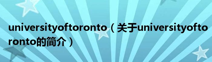 本文關(guān)于universityoftoronto的簡(jiǎn)介就講解完畢,希望對(duì)大家有所幫助。