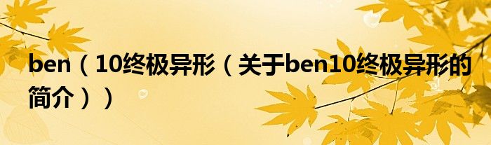 大家好,ben 10終極異形,關(guān)于ben 10終極異形的簡介很多人還不知道,現(xiàn)在讓我們一起來看看吧!