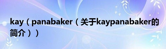大家好,kay panabaker,關于kay panabaker的簡介很多人還不知道,現(xiàn)在讓我們一起來看看吧!