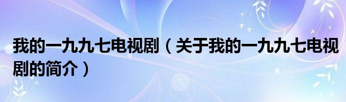 本文關(guān)于我的一九九七電視劇的簡介就講解完畢,希望對大家有所幫助。