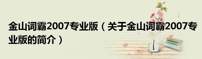 本文關于金山詞霸2007專業版的簡介就講解完畢,希望對大家有所幫助。