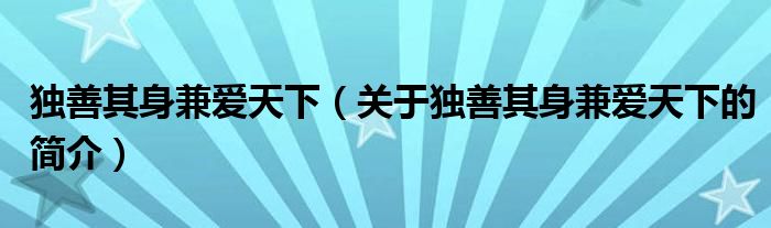 本文關于獨善其身兼愛天下的簡介就講解完畢,希望對大家有所幫助。