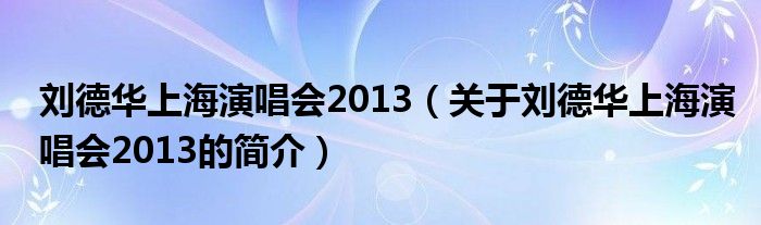 本文關于劉德華上海演唱會2013的簡介就講解完畢,希望對大家有所幫助。