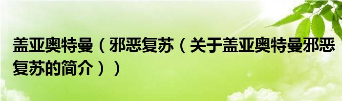 本文關于蓋亞奧特曼 邪惡復蘇的簡介就講解完畢,希望對大家有所幫助。