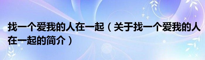 大家好,找一個愛我的人在一起,關于找一個愛我的人在一起的簡介很多人還不知道,現在讓我們一起來看看吧!