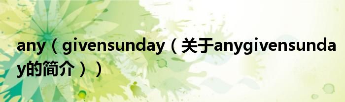 本文關(guān)于any given sunday的簡介就講解完畢,希望對大家有所幫助。