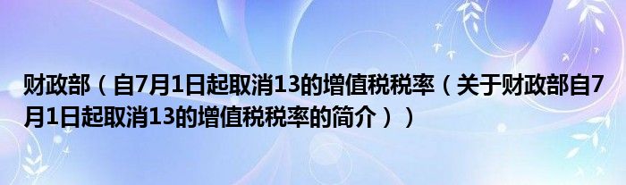 大家好,財(cái)政部 自7月1日起取消13 的增值稅稅率,關(guān)于財(cái)政部 自7月1日起取消13 的增值稅稅率的簡(jiǎn)介很多人還不知道,現(xiàn)在讓我們一起來(lái)看看吧!