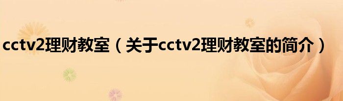 本文關于cctv2理財教室的簡介就講解完畢,希望對大家有所幫助。