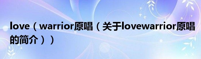 本文關于love warrior原唱的簡介就講解完畢,希望對大家有所幫助。