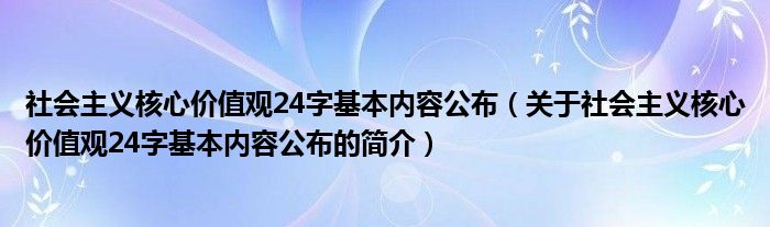 本文關于社會主義核心價值觀24字基本內容公布的簡介就講解完畢,希望對大家有所幫助。