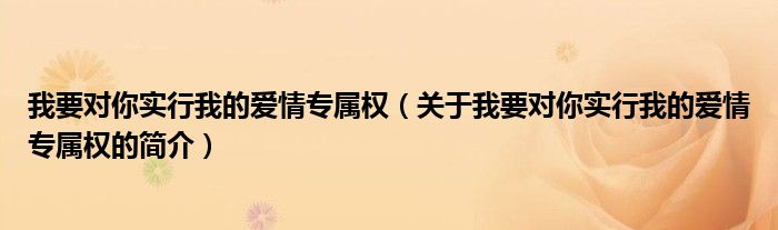 本文關于我要對你實行我的愛情專屬權的簡介就講解完畢,希望對大家有所幫助。