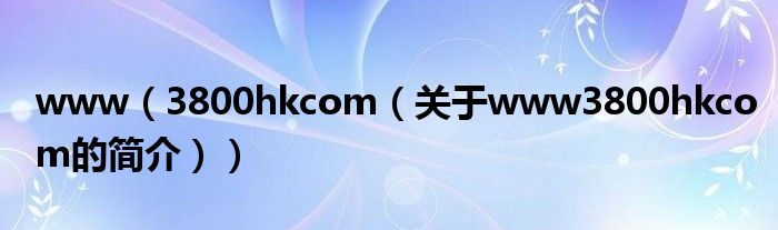 大家好,www 3800hk com,關于www 3800hk com的簡介很多人還不知道,現在讓我們一起來看看吧!