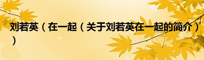 本文關(guān)于劉若英 在一起的簡(jiǎn)介就講解完畢,希望對(duì)大家有所幫助。