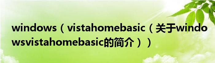 大家好,windows vista home basic,關于windows vista home basic的簡介很多人還不知道,現在讓我們一起來看看吧!