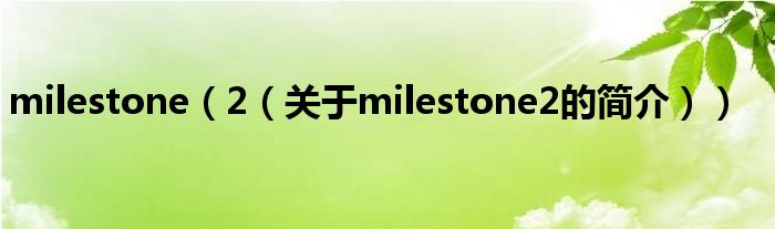 大家好,milestone 2,關于milestone 2的簡介很多人還不知道,現在讓我們一起來看看吧!