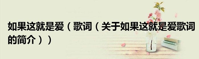 大家好,如果這就是愛 歌詞,關于如果這就是愛 歌詞的簡介很多人還不知道,現在讓我們一起來看看吧!