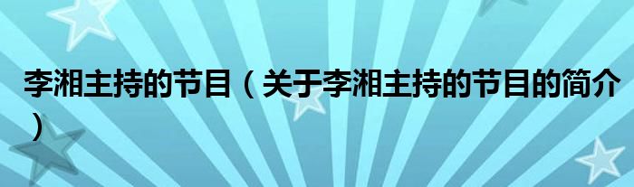本文關于李湘主持的節目的簡介就講解完畢,希望對大家有所幫助。