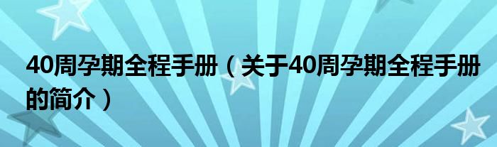 本文關于40周孕期全程手冊的簡介就講解完畢,希望對大家有所幫助。