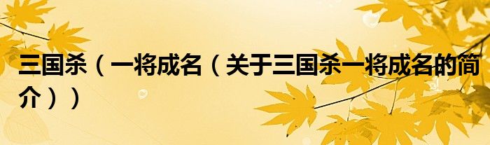 本文關于三國殺 一將成名的簡介就講解完畢,希望對大家有所幫助。