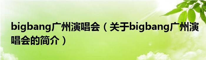 本文關(guān)于bigbang廣州演唱會(huì)的簡(jiǎn)介就講解完畢,希望對(duì)大家有所幫助。