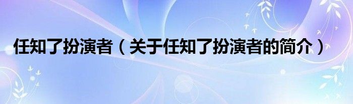 大家好,任知了扮演者,關(guān)于任知了扮演者的簡介很多人還不知道,現(xiàn)在讓我們一起來看看吧!