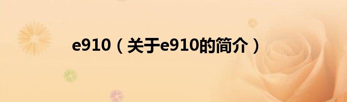 大家好,e910,關于e910的簡介很多人還不知道,現在讓我們一起來看看吧!