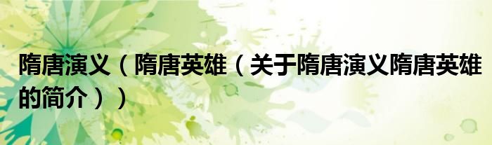 本文關于隋唐演義 隋唐英雄的簡介就講解完畢,希望對大家有所幫助。