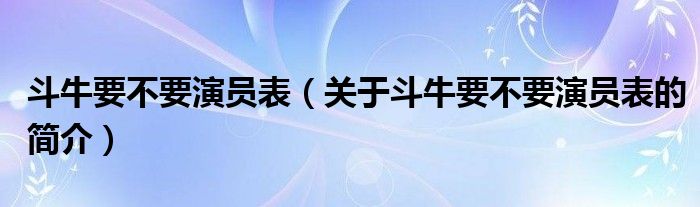 本文關(guān)于斗牛要不要演員表的簡介就講解完畢,希望對(duì)大家有所幫助。