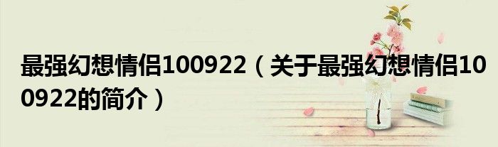 本文關于最強幻想情侶100922的簡介就講解完畢,希望對大家有所幫助。