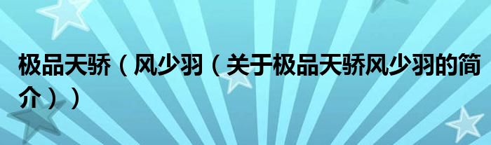 本文關于極品天驕 風少羽的簡介就講解完畢,希望對大家有所幫助。