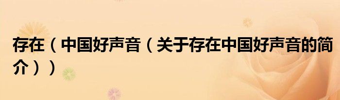 大家好,存在 中國好聲音,關于存在 中國好聲音的簡介很多人還不知道,現在讓我們一起來看看吧!
