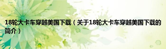 本文關于18輪大卡車穿越美國下載的簡介就講解完畢,希望對大家有所幫助。