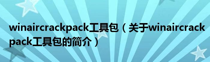 大家好,winaircrackpack工具包,關(guān)于winaircrackpack工具包的簡(jiǎn)介很多人還不知道,現(xiàn)在讓我們一起來(lái)看看吧!