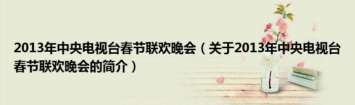 本文關(guān)于2013年中央電視臺春節(jié)聯(lián)歡晚會的簡介就講解完畢,希望對大家有所幫助。