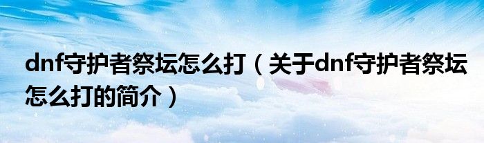 本文關于dnf守護者祭壇怎么打的簡介就講解完畢,希望對大家有所幫助。