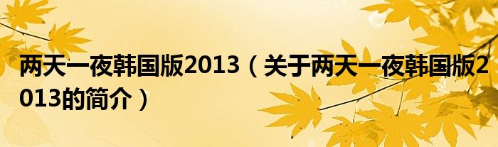 本文關于兩天一夜韓國版2013的簡介就講解完畢,希望對大家有所幫助。