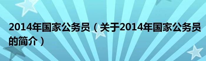 大家好,2014年國家公務員,關于2014年國家公務員的簡介很多人還不知道,現(xiàn)在讓我們一起來看看吧!
