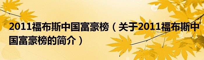 本文關于2011福布斯中國富豪榜的簡介就講解完畢,希望對大家有所幫助。