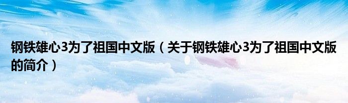 本文關于鋼鐵雄心3為了祖國中文版的簡介就講解完畢,希望對大家有所幫助。
