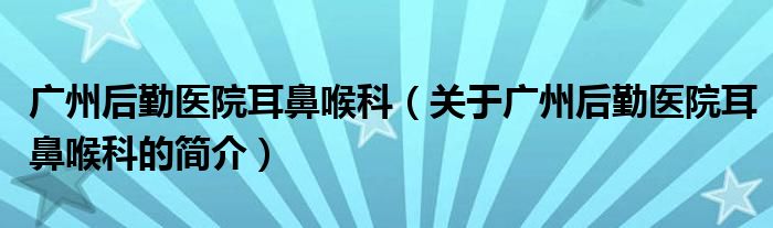 大家好,廣州后勤醫院耳鼻喉科,關于廣州后勤醫院耳鼻喉科的簡介很多人還不知道,現在讓我們一起來看看吧!