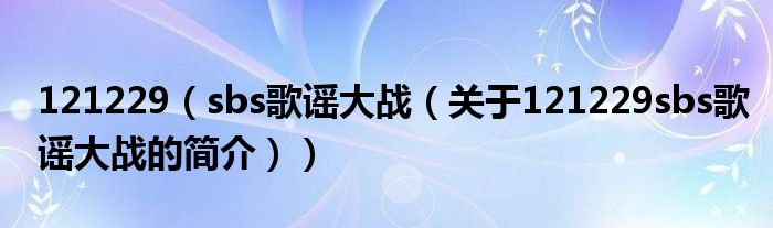 本文關于121229 sbs 歌謠大戰的簡介就講解完畢,希望對大家有所幫助。