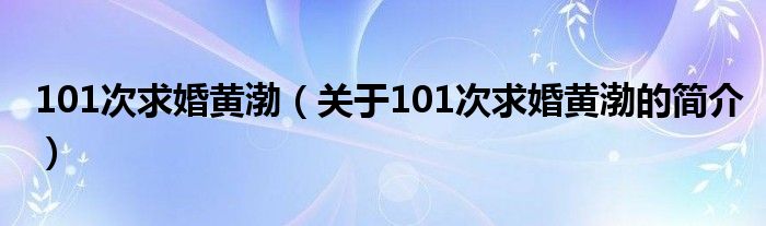 大家好,101次求婚黃渤,關于101次求婚黃渤的簡介很多人還不知道,現在讓我們一起來看看吧!