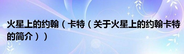 本文關于火星上的約翰 卡特的簡介就講解完畢,希望對大家有所幫助。