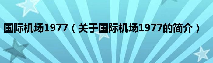 大家好,國際機場1977,關于國際機場1977的簡介很多人還不知道,現在讓我們一起來看看吧!